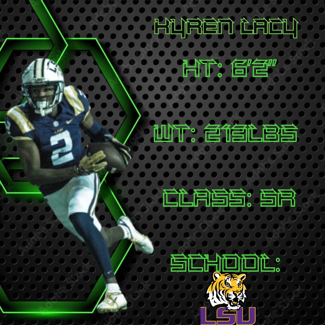 Lacy had 58 receptions for 866 yards and seven touchdowns on the season. He led the LSU Tigers in all categories in 2024.